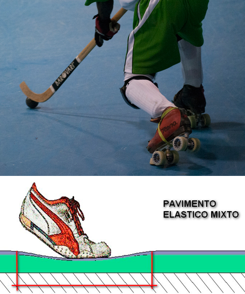 La combinación del pavimento de poliuretano “punto elástico” en conjunto con la sub estructura del tipo “área elástica” resulta en un pavimento con deformación del tipo “elástico combinado” (según norma EN 14904). Estos pavimentos presentan una gran versatilidad para el desarrollo de una amplia variedad de deportes con una alta capacidad de absorción de impacto (sobre el 40%) y deformación vertical (> 2,5mm). Lo anterior permite disponer de una superficie deportiva extremadamente cómoda para los usuarios sin perjudicar otras propiedades como el rebote del balón necesarias para deportes como el basketball.